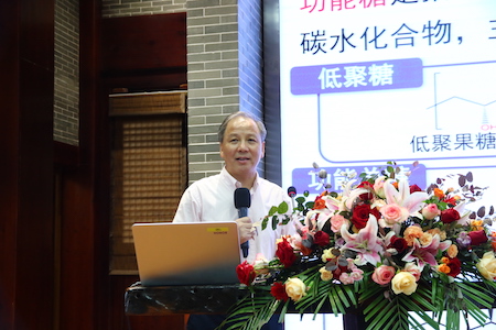 下午,中國工程院院士、浙江工業(yè)大學(xué)生物工程學(xué)院院長鄭裕國作《生物制造技術(shù)推動功能糖產(chǎn)業(yè)創(chuàng)新發(fā)展》報告。