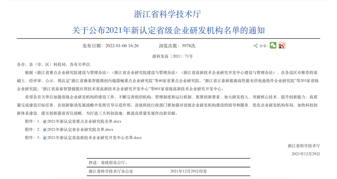 近日,省科技廳發(fā)布《關于公布2021年新認定省級企業(yè)研發(fā)機構名單的通知》(浙科發(fā)高〔2021〕71號),經(jīng)推薦、評審、公示,華康股份建設的“浙江省功能性糖醇重點企業(yè)研究院”被認定為2021年省重點企業(yè)研究院。